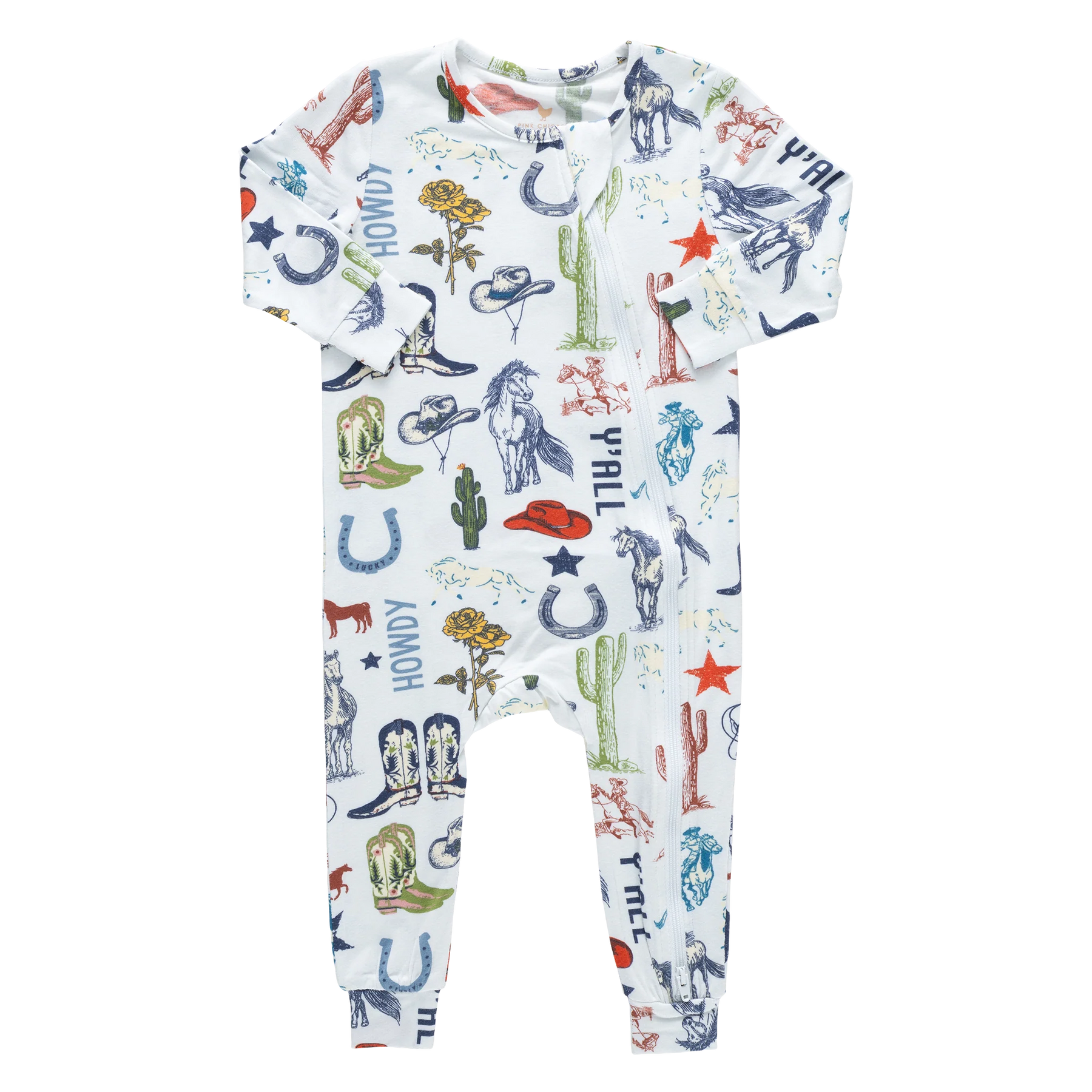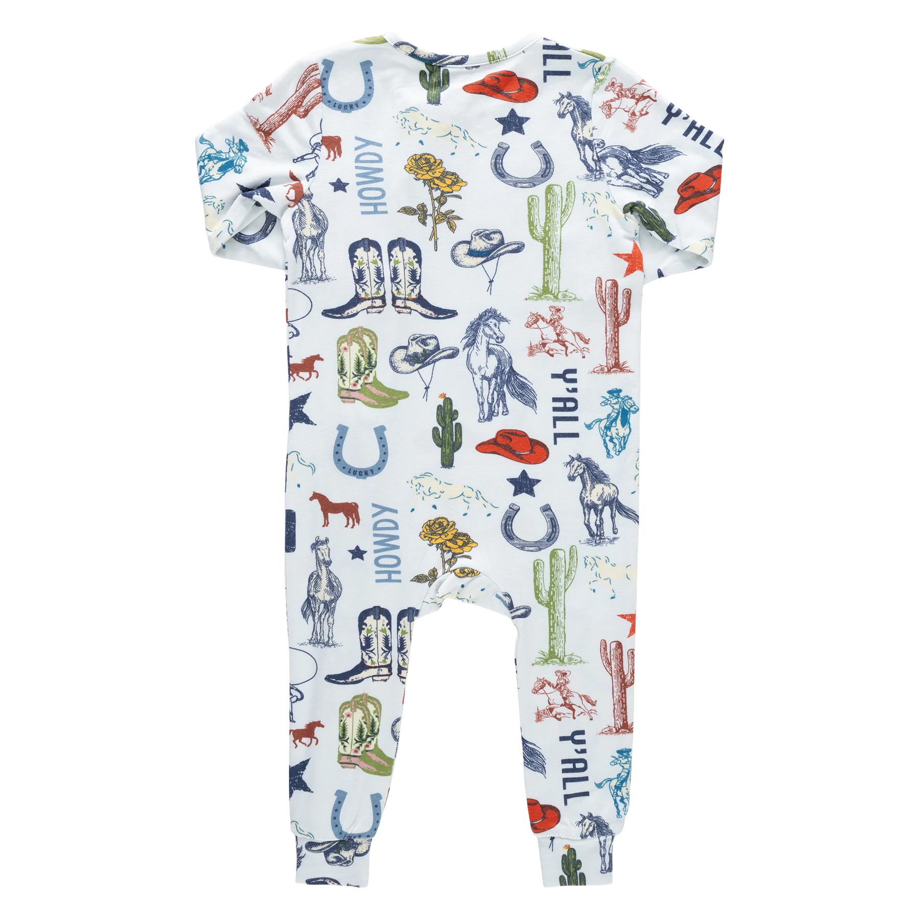 Saddle up for soft snuggles! Our Baby Bamboo Romper features our playful Western Dreams print, filled with charming cowboy-inspired icons for a little western whimsy. Designed with everyday ease in mind, sizes 0/3m and 3/6m include fold-over hand and foot cuffs for extra coziness, while a two-way zipper with a protective cover makes diaper changes quick and stress-free. Made from ultra-soft bamboo fabric with a smooth, silk-like feel, this breathable romper keeps littles cool in warm weather and comfy all year long.