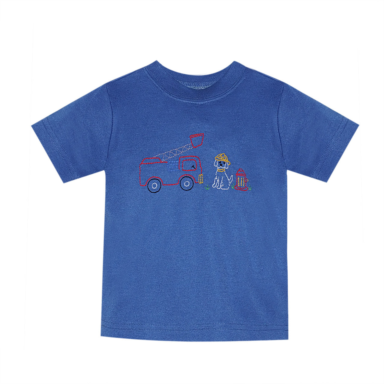 Dog with Firetruck Houston Blue Shirt