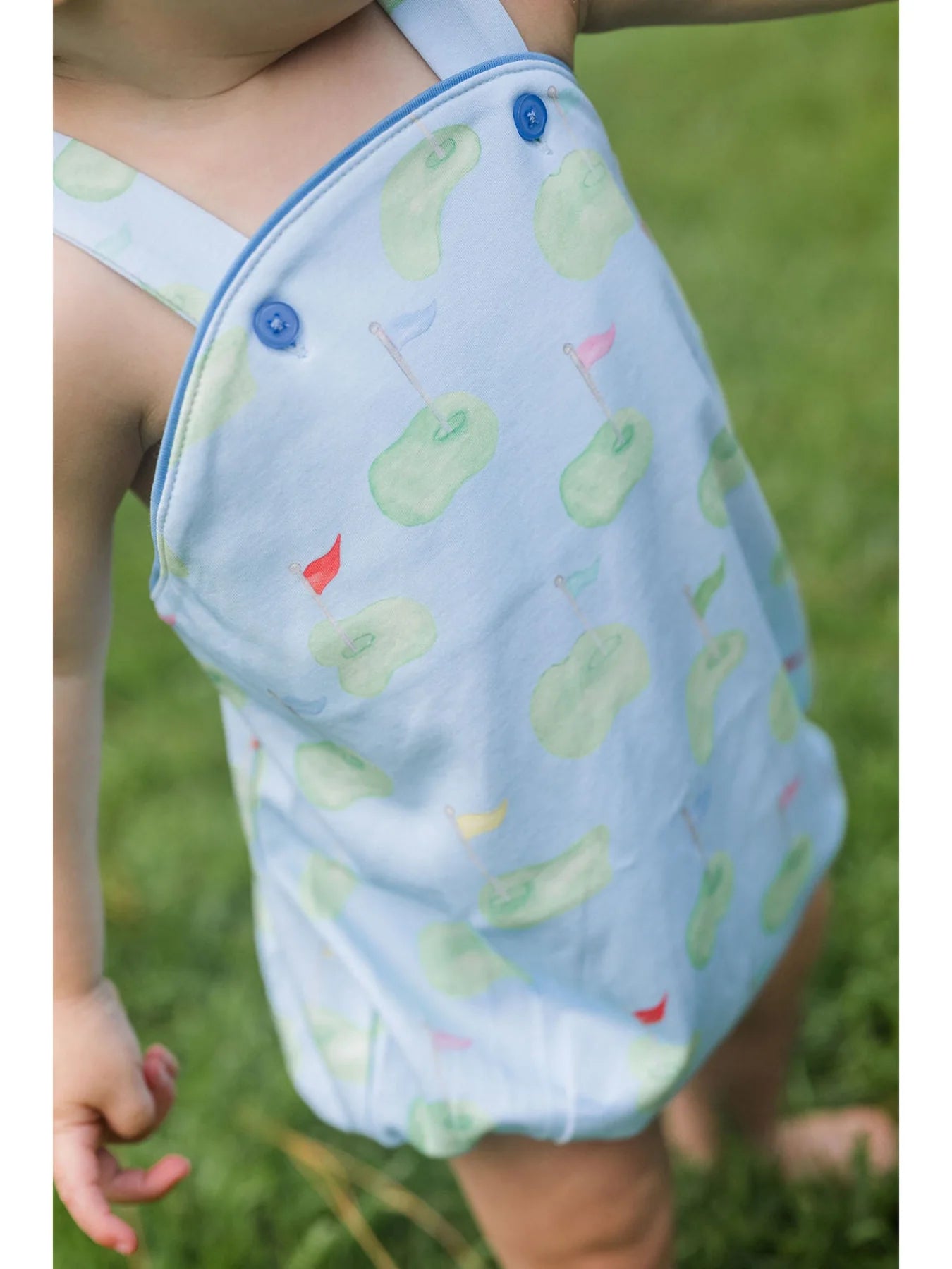Tee off in style with the Louie Bubble – PUTT-er Up, a charming golf-printed knit sunsuit designed for little ones who love the greens. This playful one-piece features a soft, breathable knit fabric perfect for warm weather adventures, complete with adorable golf-themed prints that'll have everyone smiling. Easy to dress in and comfortable all day long, it's the perfect outfit for family outings, playdates, or casual summer fun. Par-fect for the pint-sized golfer in your life!