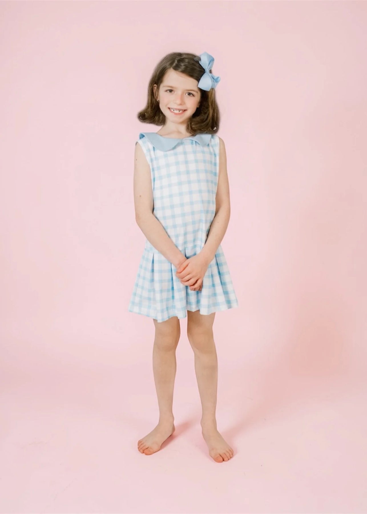 Sweet, classic, and made for picture-perfect moments — the Susannah Dress in Blue Gingham is a timeless favorite with a playful twist. Soft blue gingham paired with a darling Peter Pan collar creates a look that feels polished, feminine, and effortlessly charming.