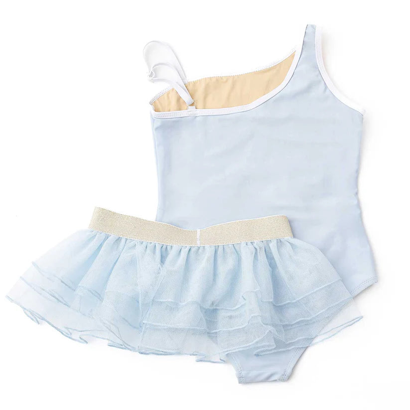Blue One Piece Swimsuit & Tutu Skirt - Sequins Bow