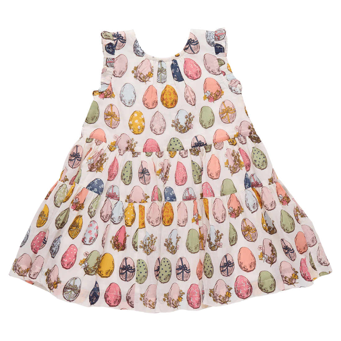 • Eloise Ruffle Dress with cheerful multicolor egg print