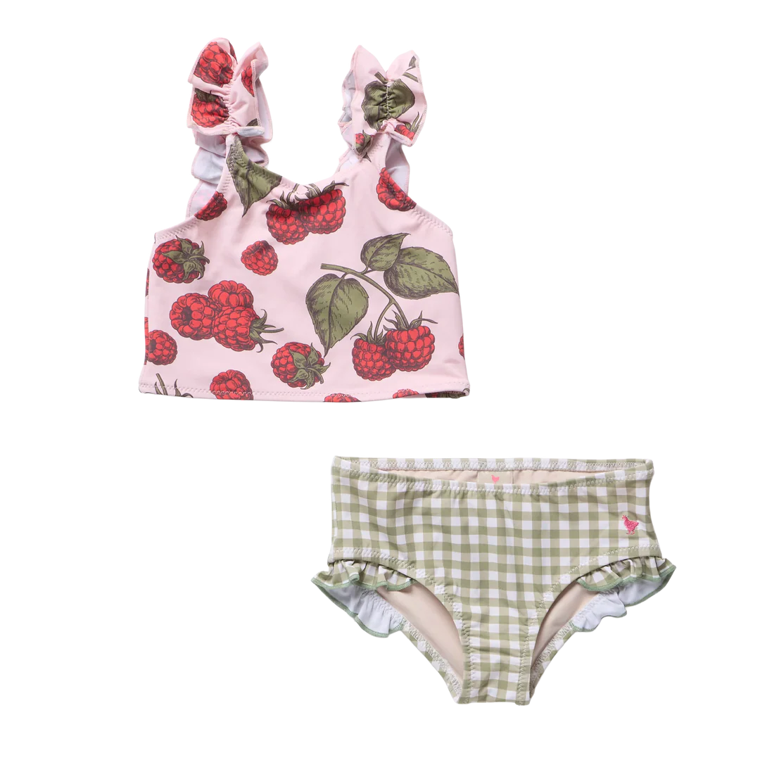 Sweet and playful, the Via Tankini features ruffle straps trimmed in pink pearl stitching for a soft, feminine finish. Coordinating ruffles at the leg opening are accented with green pearl stitch for a thoughtful contrast detail. A cheerful silhouette designed for sunny, carefree swim days.