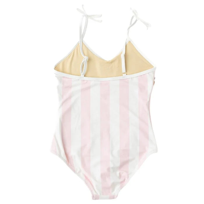 A sweet strawberry pattern against pink cabana stripes makes this Shade Critters swimsuit incredibly cute. Flip sequins also make it fun to touch and fun to wear. This one-piece girl’s swimsuit also includes a comfortable cut and adjustable tie straps for a customized fit.