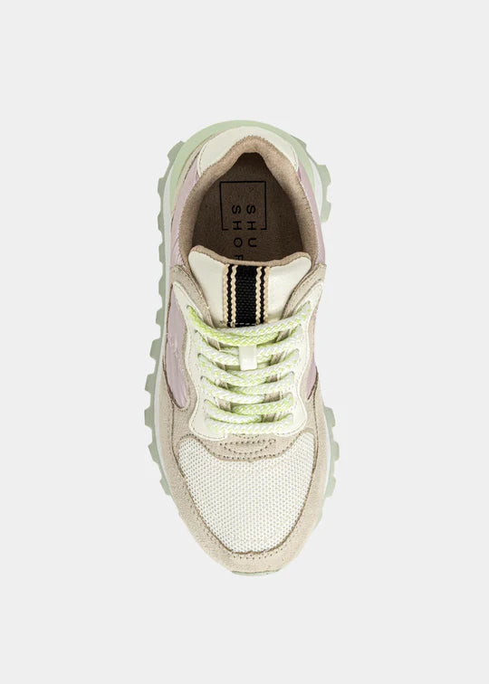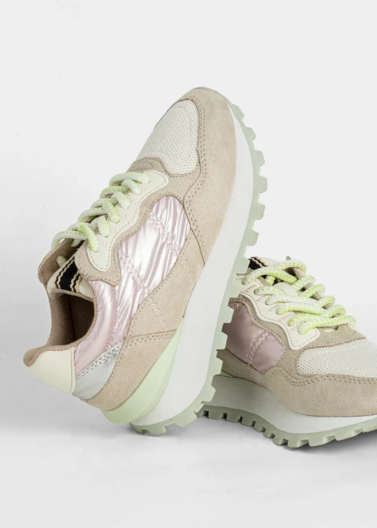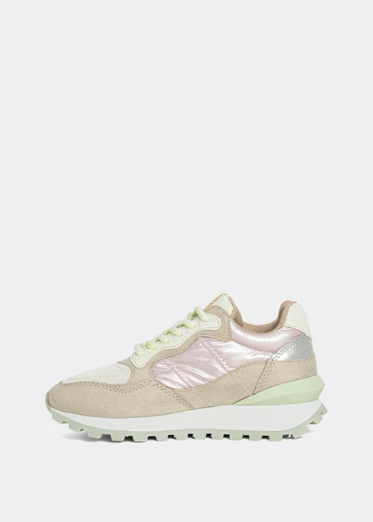 Let your little one shine bright from the playground to weekend outings. PHOEBE MINI brings bold energy to tiny steps, combining retro-cool vibes with a playful twist. With its chunky sole, shimmering textures, and layered pastel tones, this standout sneaker delivers big style for little fashionistas. Designed for fun, comfort, and all-day movement this pair is a mini-size statement.
